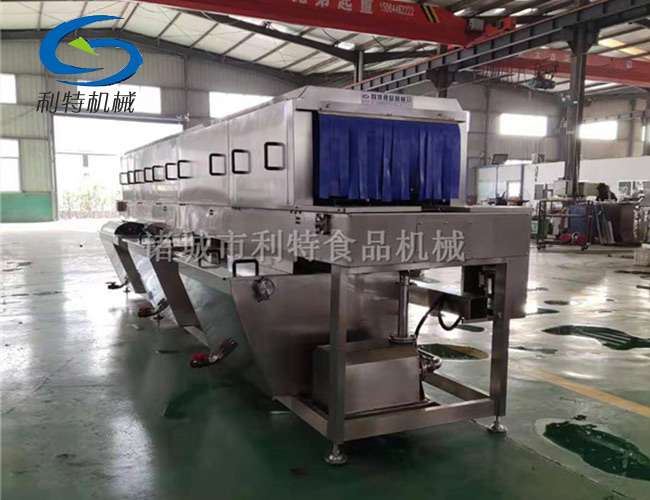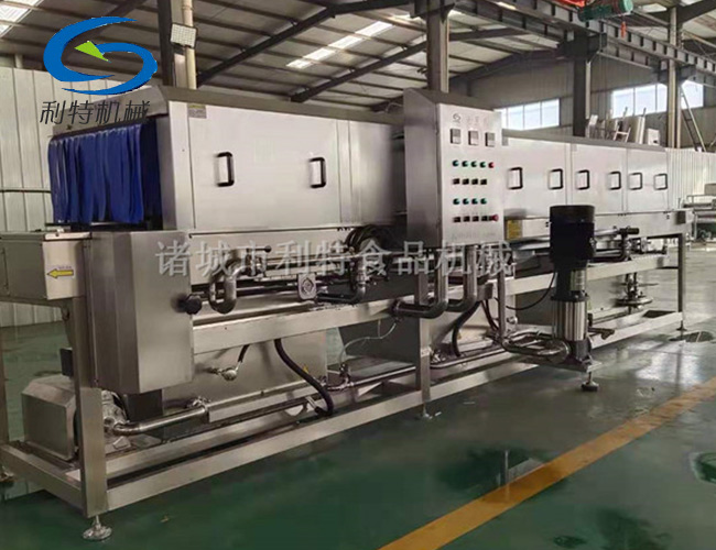 3、漂洗段:將筐子表面殘留的污漬漂洗掉,達(dá)到表面無殘留,同時(shí)對(duì)筐子消毒殺菌。