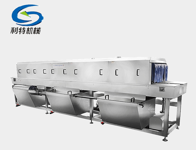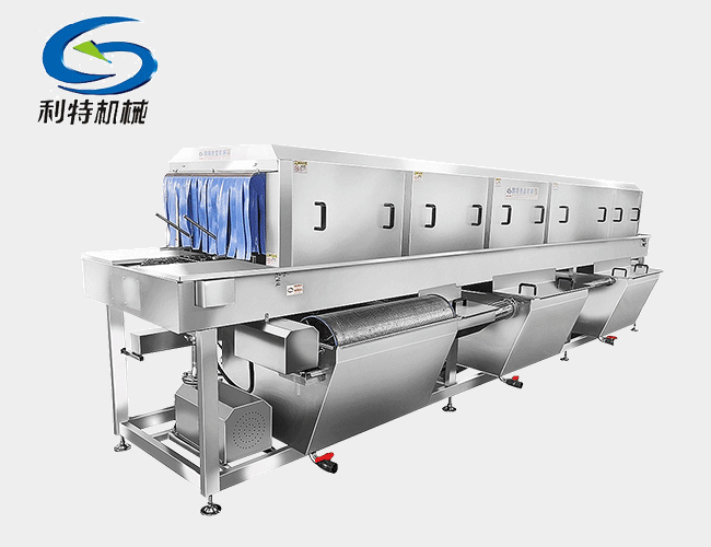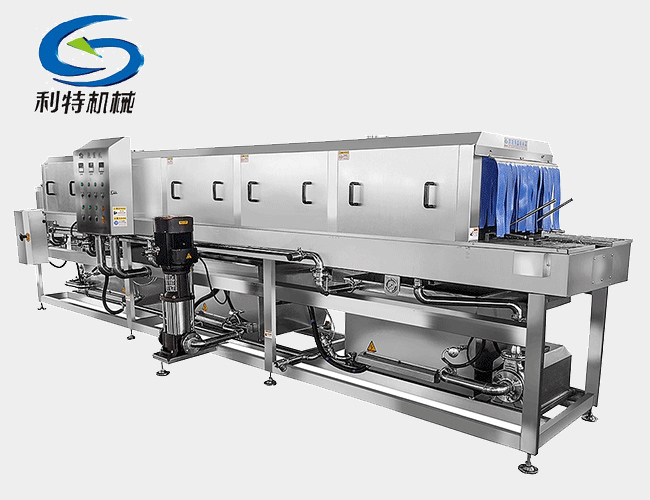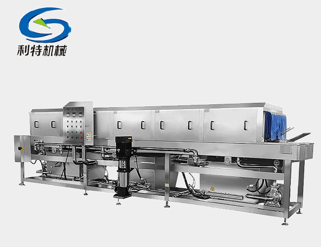 3、漂洗段:將筐子表面殘留的污漬漂洗掉,達(dá)到表面無(wú)殘留,同時(shí)對(duì)筐子消毒殺菌。