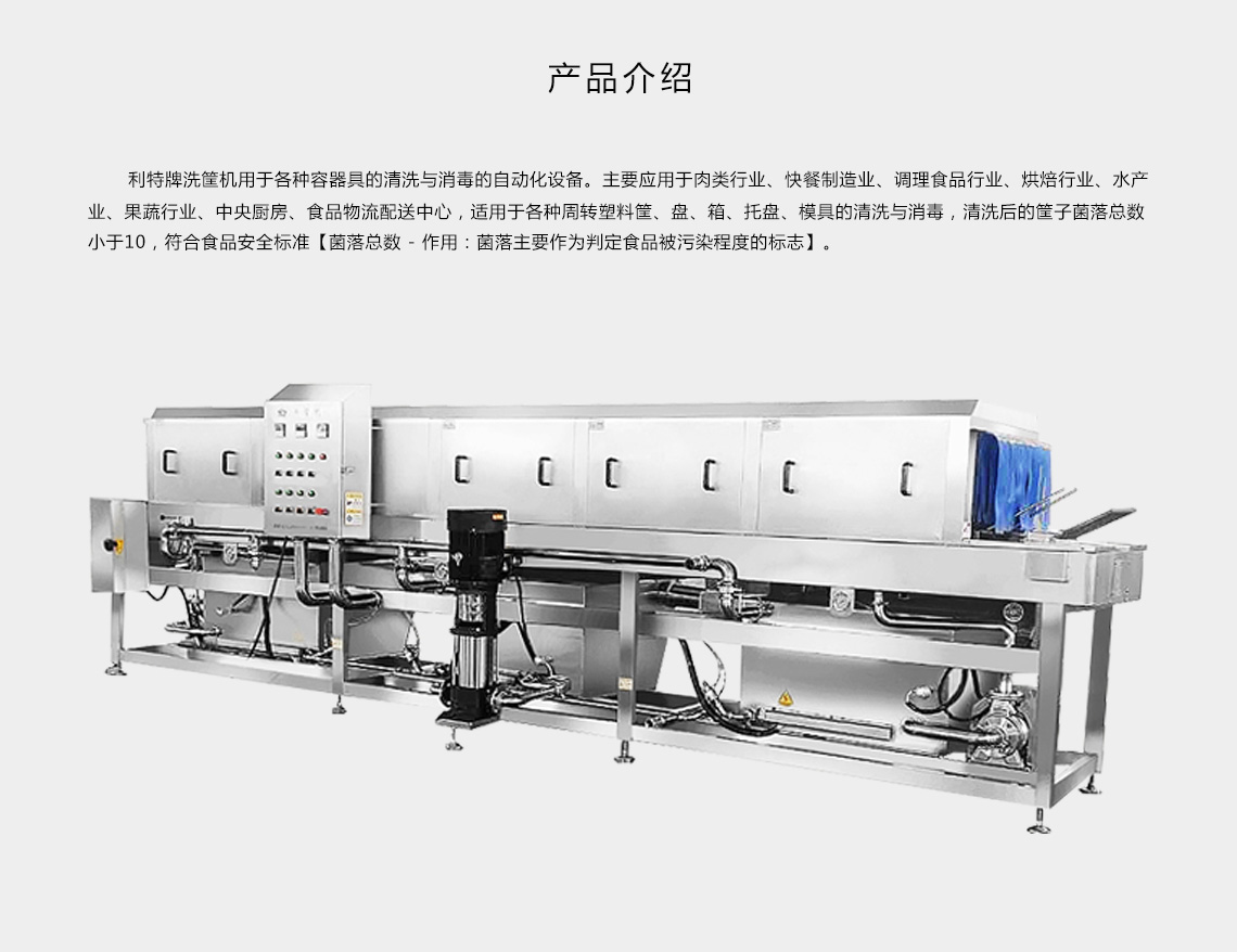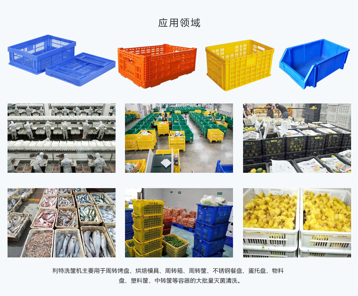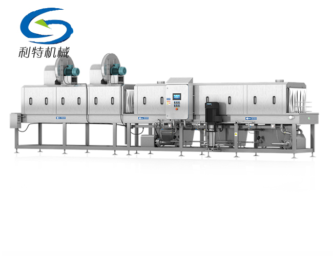 3、漂洗段:將筐子表面殘留的污漬漂洗掉,達(dá)到表面無殘留,同時對筐子消毒殺菌。