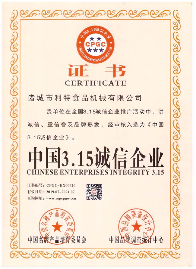 中國(guó)質(zhì)量誠(chéng)信AAAA級(jí)企業(yè)